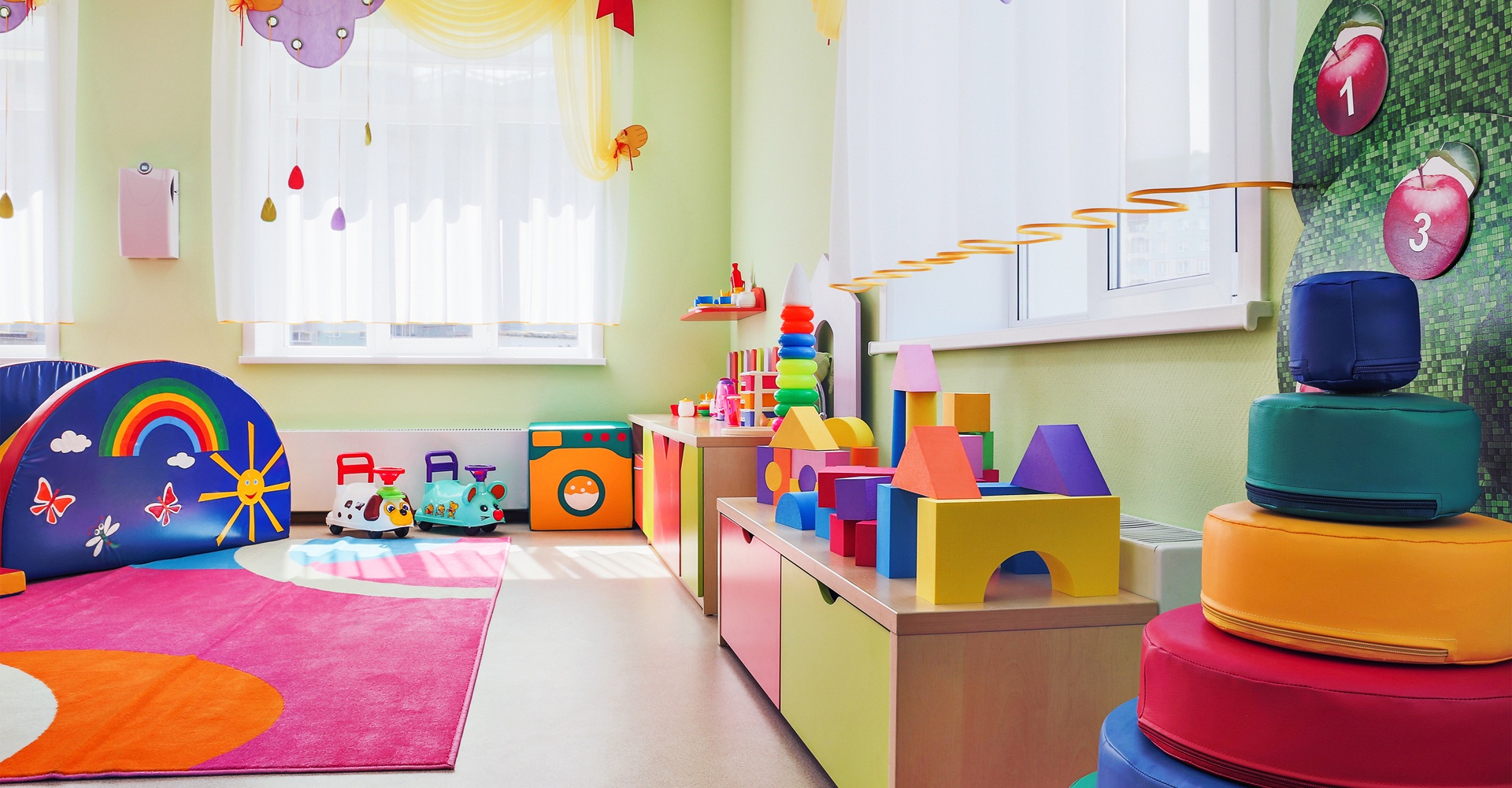 Our Daycare center provides programs for every age level including Infants, Toddlers, Junior Preschool, Senior Preschool, Kindergarteners and School Age children. Every activity is designed to support the development and well-being of your child, is age-appropriate and is based on individual children's needs, abilities and interests. Rooms are arranged to offer challenging play and learning choices at a range of developmental levels. The program is based on weekly themes and offers cognitive, social, emotional and physical development, circle times, creative arts, dramatic play, language, literature, music, science & nature, math, jolly phonics, computer, fine & gross motor, sensory and outdoor activities.